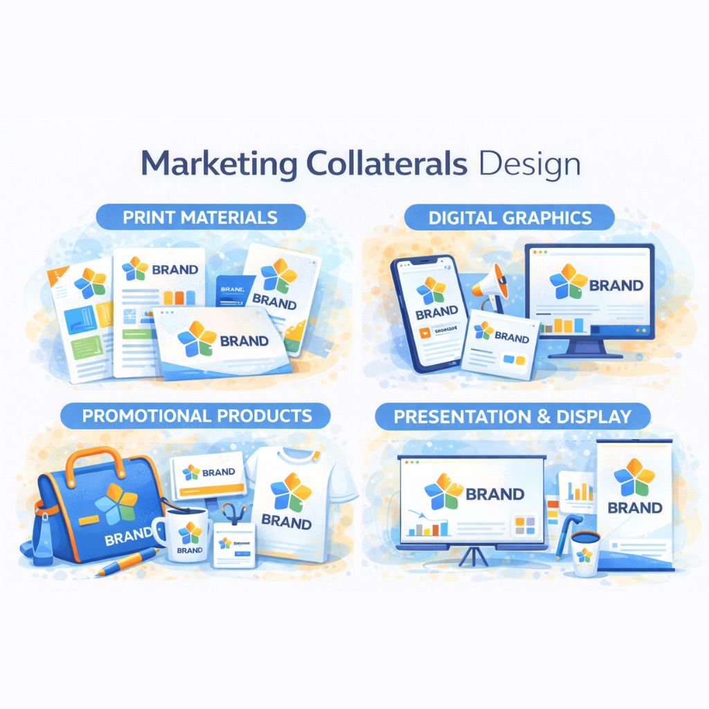 Marketing collaterals are essential tools that help businesses communicate their brand message effectively to their audience. At PII Digital Technologies, we design visually appealing brochures, flyers, business cards, and promotional materials that strengthen your brand presence. Our designs focus on clear messaging, professional layouts, and strong visual appeal to capture attention. Well-designed marketing materials not only enhance brand visibility but also help businesses build credibility and connect with potential customers more effectively.
